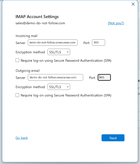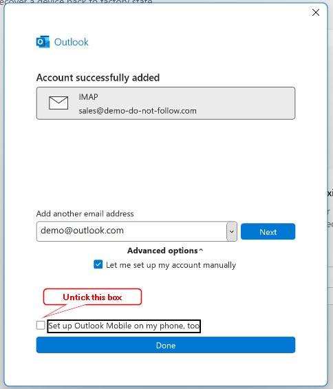 - Your IMAP email account is now set up and ready to use in Outlook.